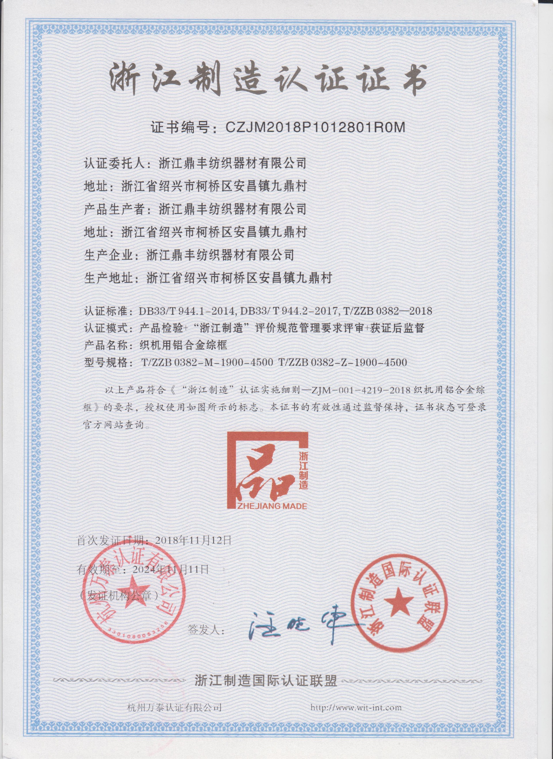 1、貴公司是一家專業(yè)生產(chǎn)各類無梭織機(jī)鋁合金鋼筘、綜框、鋼片綜、停經(jīng)片、經(jīng)軸、織軸和卷布輥等產(chǎn)品及配件的民營(yíng)企業(yè)。公司成立30多年迅速發(fā)展、占領(lǐng)市場(chǎng)的秘決是什么?余定雅:是高品質(zhì)的產(chǎn)品,完善的售后服務(wù)和大規(guī)模的生產(chǎn)能力保證了浙江鼎豐紡織器材有限公司的產(chǎn)品銷售量在國(guó)內(nèi)獨(dú)占鰲頭。為了與全球市場(chǎng)經(jīng)濟(jì)接軌,鼎豐紡